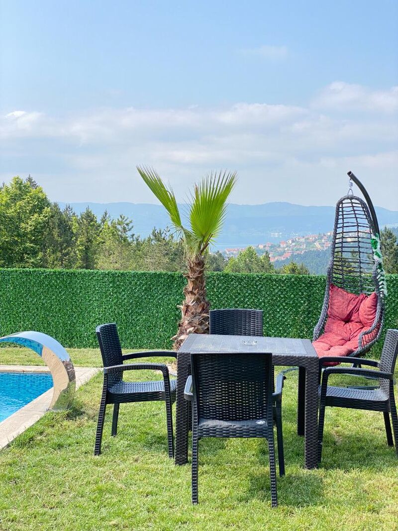 Havuz terasına açılan kapıdan dışarı adım attığınızda ise sizi özel yüzme havuzumuz ve güneşlenme alanımız karşılıyor. Bahçe mobilyaları, barbekü alanı ve ateş kazanıyla donatılmış bu alanda, mangal keyfi yapabilir veya gün batımını izleyerek huzur bulabilirsiniz.