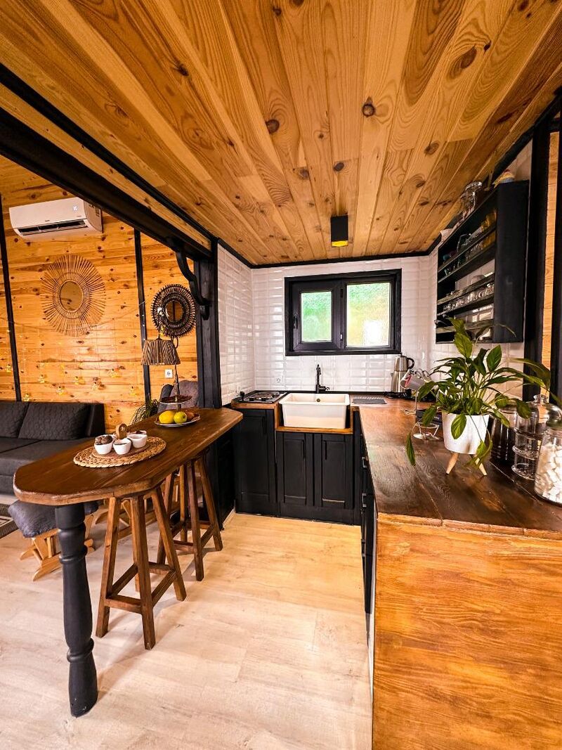 Her bungalovda modern Amerikan mutfak, tam donanımlı tencere-tava seti ve kahve makinesi gibi detaylar düşünüldü. Akşam yemeği için bahçe masasında ailenizle keyifli vakit geçirebilir, mangal keyfi yapabilirsiniz. Terasında güneşlenirken veya oturma grubunda dinlenirken Sapanca Gölü'nün eşsiz manzarasının keyfini çıkarabilirsiniz.