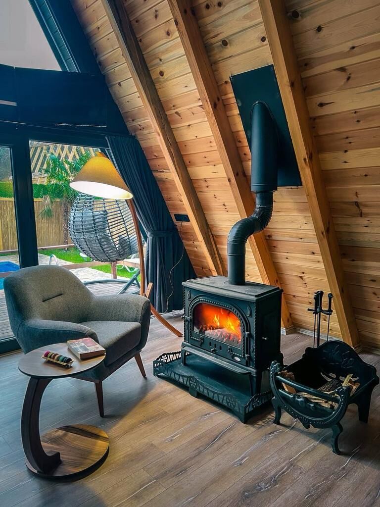 İç mekanları ise modern ve şık mobilyalarla döşenmiş. Full eşyalı ve mobilyalı olan bungalovda, oturma grubunda dinlenirken şömineli sobanın başında huzur bulacaksınız. Ayrıca tüm odalarda bulunan klima sayesinde yazın serin, kışın ise sıcak bir ortamda konaklama imkanına sahipsiniz.