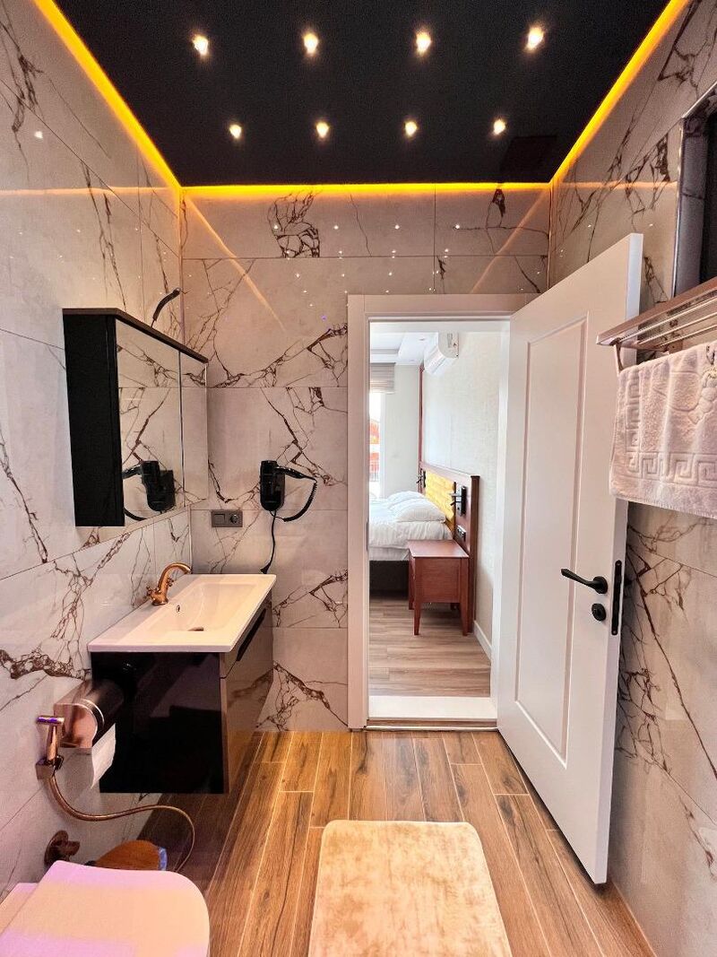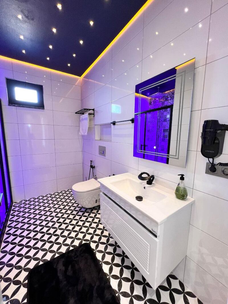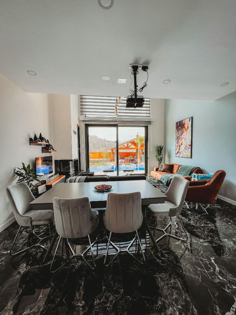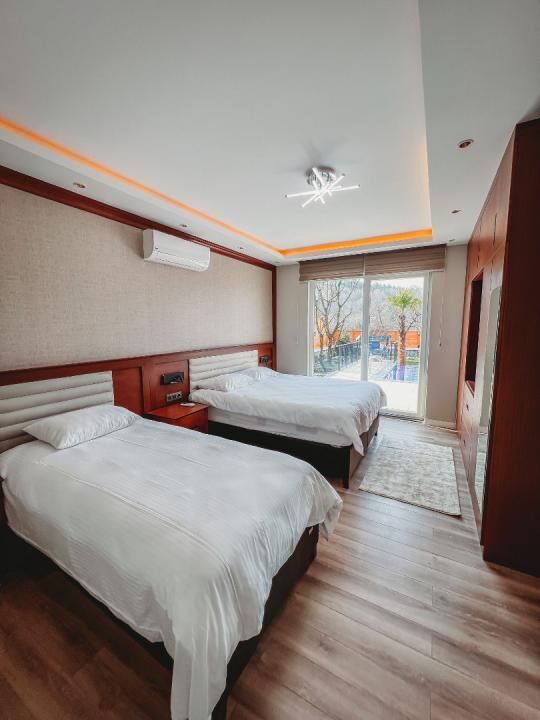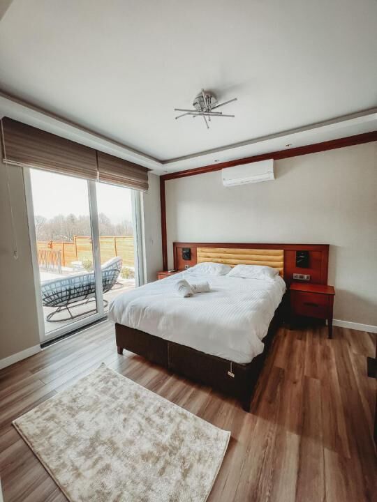 Oda ve Banyo Özellikleri: 3 oda, 1 salon, 3 banyo ve 4 tuvaletten oluşan bungalovumuzda, her oda kendine ait banyo ve tuvaletle donatılmıştır. Bu sayede konforunuz en üst düzeyde tutulur.