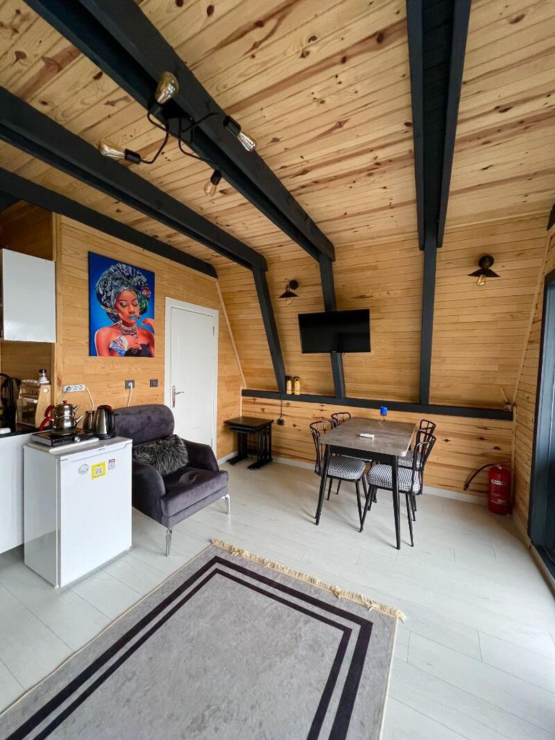 Bungalovlarımızın her biri özenle dekore edilmiştir. Geniş balkon, deck veya teras alanları, oturup kahvenizi yudumlayabileceğiniz veya sevdiklerinizle sohbet edebileceğiniz mükemmel mekanlardır. İç mekanlarda ise oturma grubu, sehpa ve uydu alıcılı TV ile donatılmış salonlar sizleri bekliyor. Netflix ve Bluetooth ses sistemi ile eğlenceniz yarım kalmayacak. Ayrıca, klimalı salonlarımız sıcak yaz günlerinde serinlemenizi sağlar.