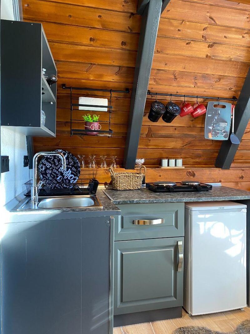 Bungalovlarımız full eşyalı ve mobilyalıdır. Modern mutfak ekipmanlarıyla donatılmış mutfağımızda kendi yemeklerinizi hazırlayabilirsiniz. Tencere, tava takımı ve bardak seti gibi detaylar da sizin için düşünüldü.