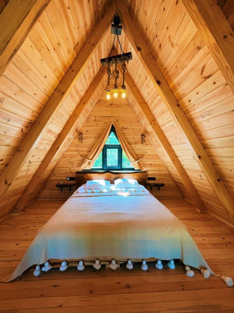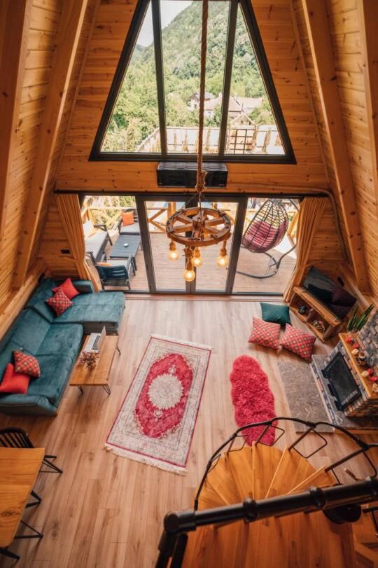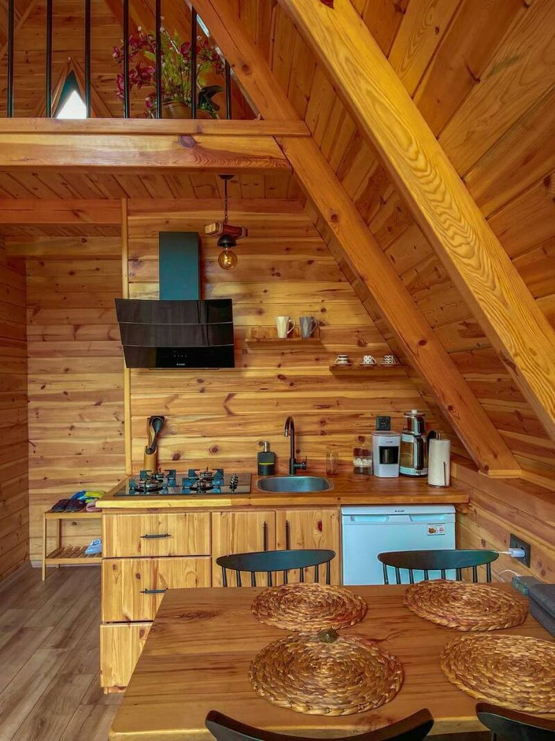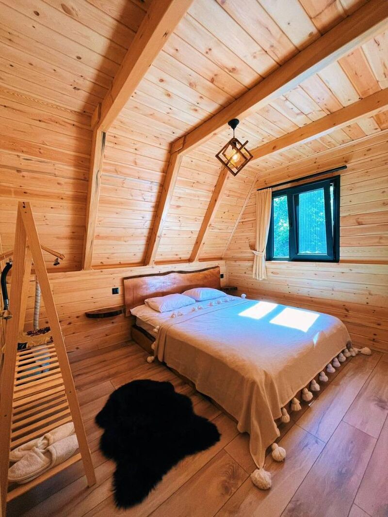 Dubleks yapısı ile alt katta bir yatak odası ve üst katta asma katta bir yatak odası bulunan bungalov, maksimum 6 kişinin konaklayabileceği şekilde tasarlanmıştır. Oturma odasında yer alan açılabilen L koltuk, klima, şömine ve TV ile sevdiklerinizle keyifli anlar geçirebilirsiniz. Mutfakta ise ocak, mini buzdolabı, kahve makinesi ve çaycı gibi ihtiyaç duyabileceğiniz tüm mutfak gereçleri mevcut.