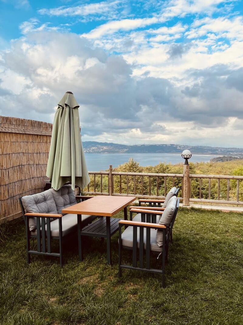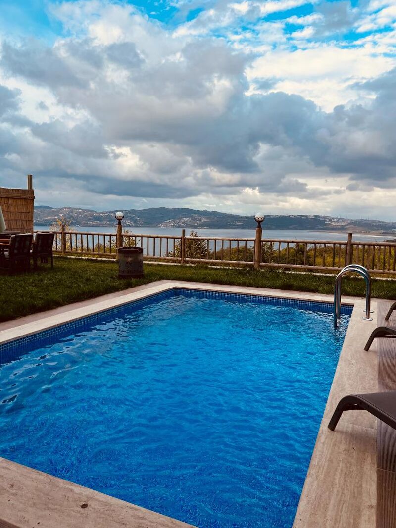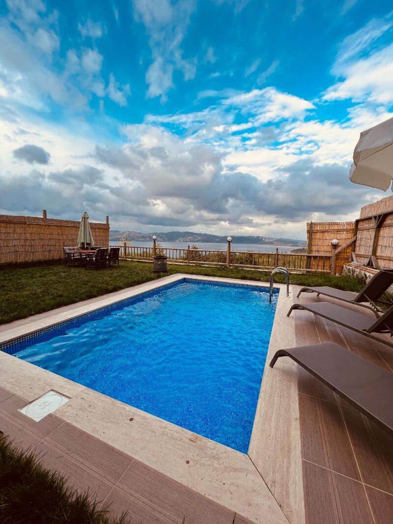 Bahçede yer alan sehpa ve barbekü (mangal) alanı, dışarıda yemek yeme ve mangal keyfi yapma imkanı sağlar. Özel yüzme havuzu ve ateş kazanı, akşamları yıldızların altında keyifli anlar yaşamanız için hazır.